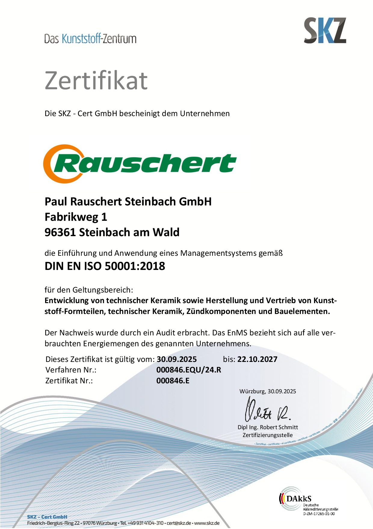 Aus diesem Grund ist Rauschert seit 2012 an seinen deutschen Standorten nach DIN EN ISO 50001 zertifiziert.